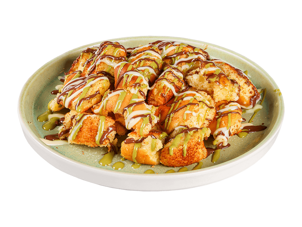 Preliv pistacije, nutelle in vanilijeve kreme.