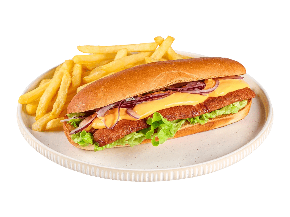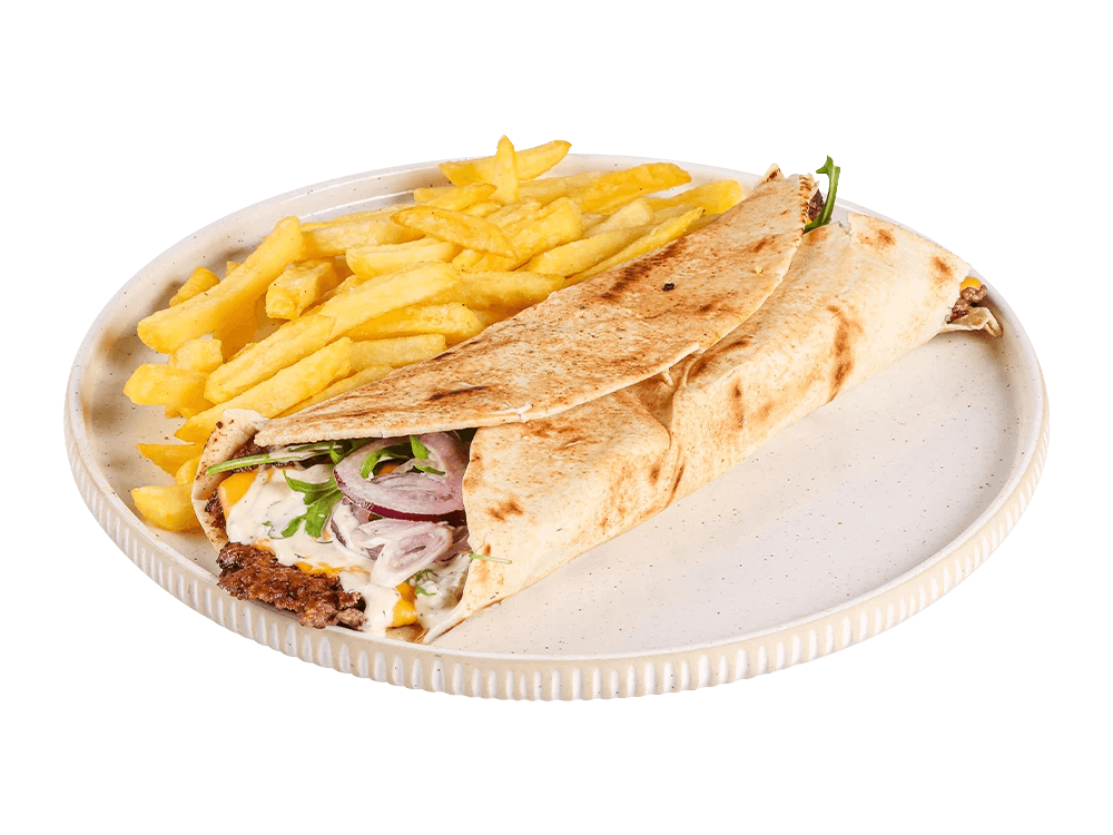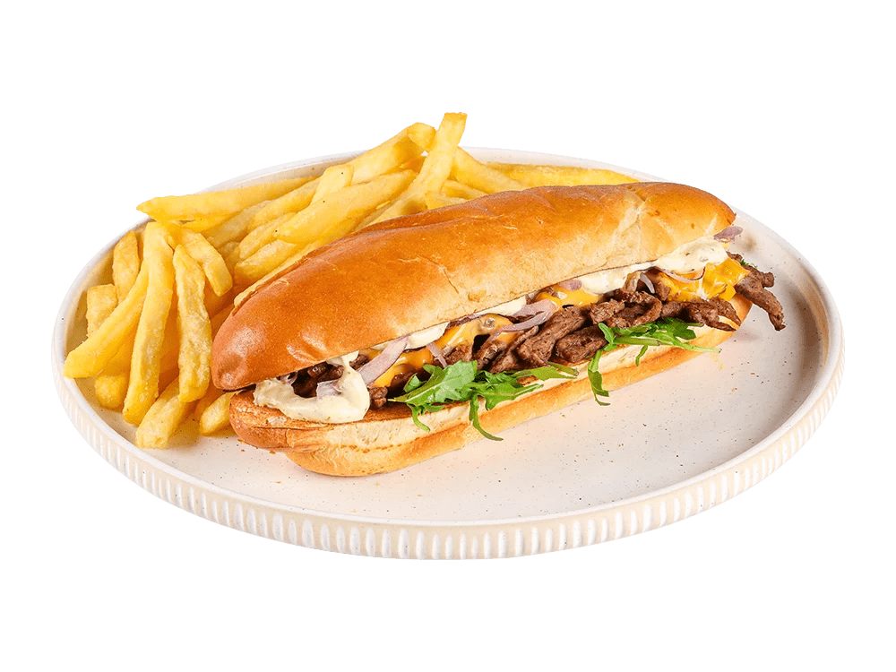 100% slovenski roastbeef, cheddar, solata, ocvrta čebula, garlic mayo omaka.