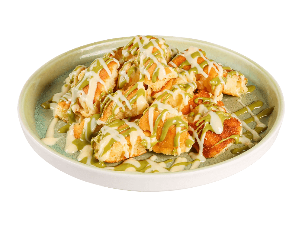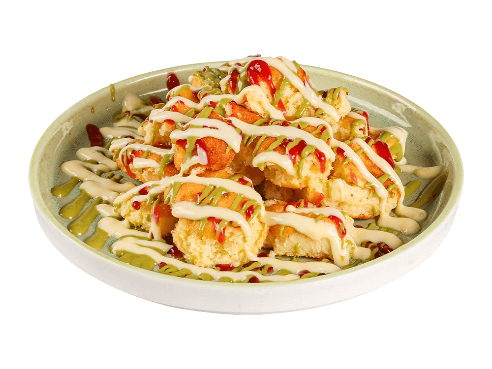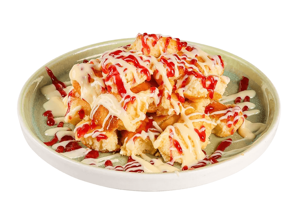 Pohan piščanec, jalapeno, paradižnik, spicy mayo omaka, čili, krompirček.
