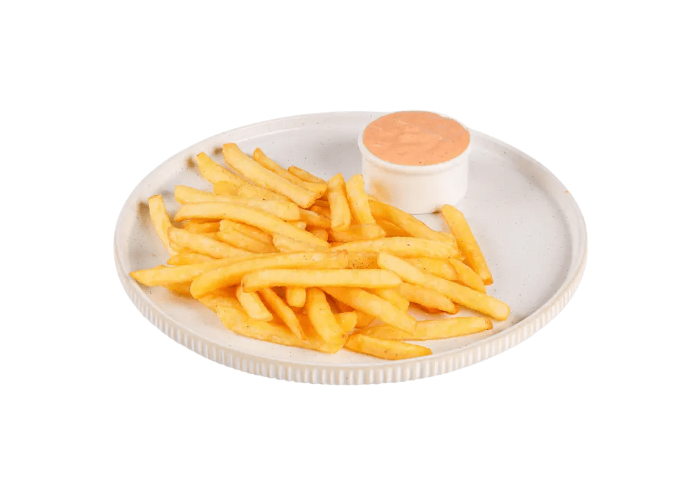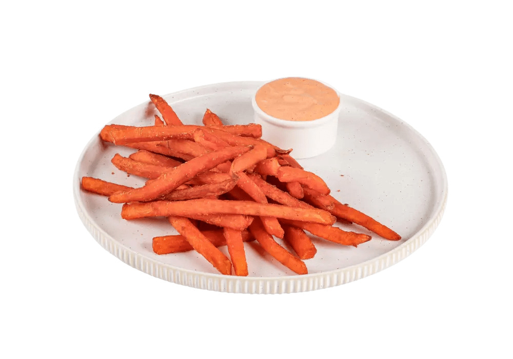 Sladki krompirček s hišno omako.